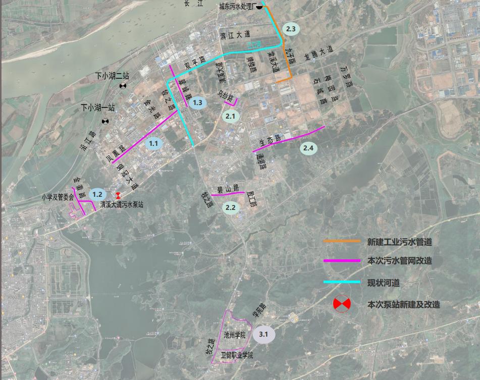 近日,公司先后在安徽省中标潜山市中心城区南片区积涝整治及排水管网改造工程一标段工程总承包(EPC)、池州市城东污水厂服务片区市政及源头地块污水管网改造一期项目(一标段)EPC总承包两个项目。 潜山市中心城区南片区积涝整治及排水管网改造工程一标段工程总承包(EPC)项目位于中心城区南片区,主要建设内容包括皖潜大道(国际饭店)及新建路(舒州大道-东关河)的雨污分流改造工程。项目建成后,将进一步提升城区排水防涝能力,有效解决内涝问题,支撑城市扩容提质和经济发展。 池州市城东污水厂服务片区市政及源头地块污水管网改造一期项目(一标段)EPC总承包项目位于贵池区,主要对城东污水厂服务片区内多条道路的市政污水管网及检查井进行修复改造,推进源头地块雨污分流。项目实施有助于从源头上削减排入长江、淮河及太平湖等重要水体的污水量,减轻流域污染,保障生态安全,为长三角一体化与新型城镇化建设提供基础设施支撑。 潜山市中心城区南片区积涝整治及排水管网改造工程中心城区雨水分区图 池州市城东污水厂服务片区市政及源头地块污水管网改造一期项目规划图 |