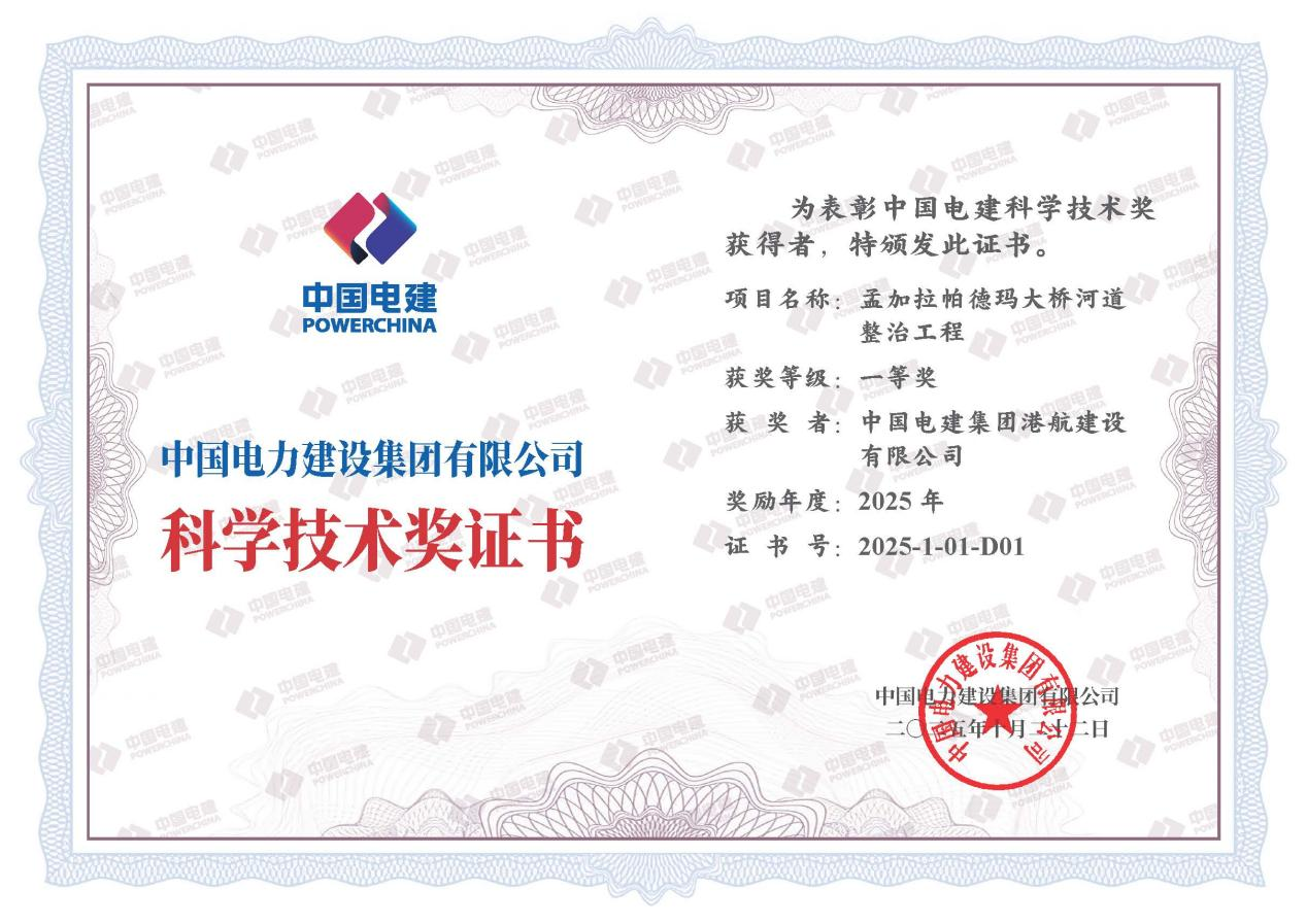 日前,集团(股份)公司科技大会在京召开,公司牵头完成的《孟加拉帕德玛大桥河道整治工程》研究成果荣获科学技术奖一等奖。 孟加拉帕德玛大桥河道整治工程是世界最大单体河道整治工程,针对项目疏浚与回填方量大、疏浚标准要求高,施工环境条件复杂、难度大等问题,公司成立研发小组,联合天津水运工程科学研究院、南京水利科学研究院等多家科研机构,开展联合科技攻关,解决了深水复杂水流条件下高精度边坡防护抛填的技术难题,研发了全过程可视化高精度测控系统,攻克了河道整治定点定向动态测控精准度与时效性难题,创造了大规模大水深河道松软边坡高精度开挖新纪录。项目开展科技立项68项,科技成果授权专利48项,发表技术论文30余篇,获集团级工法2项,科学技术奖22项,获得中国施工企业管理协会“绿色三星”工程评价,取得显著的经济社会与生态环保效益。 |